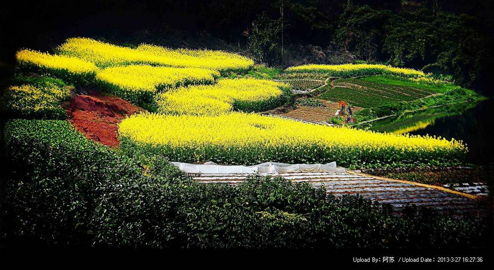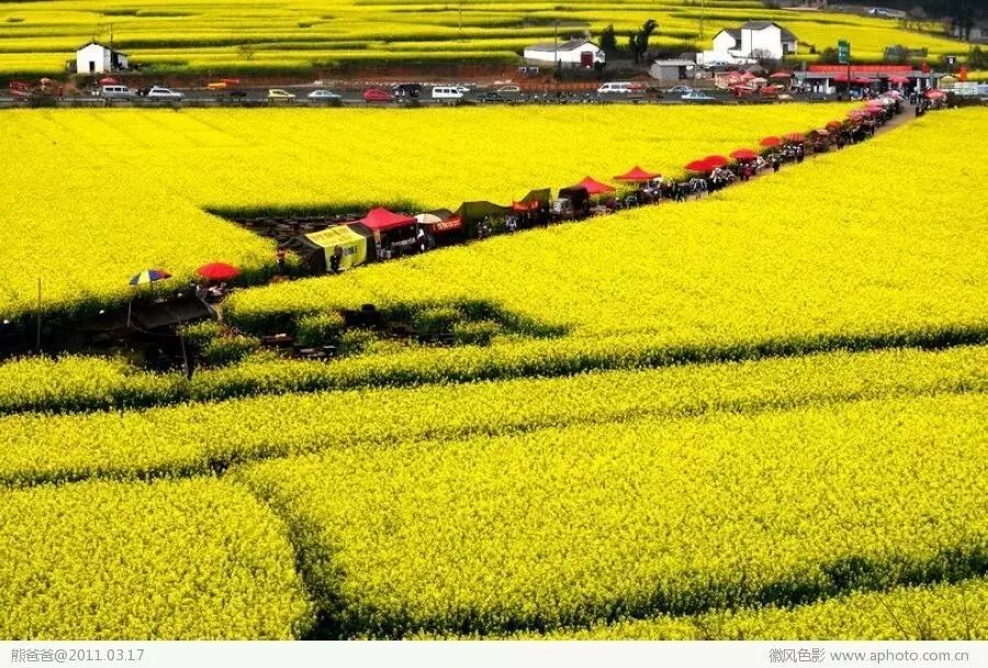 油菜花的花期很长,一般都在一两个月左右,初开的时候,浅黄和嫩绿交织一起,很清新;盛开的时候,金黄一片,非常灿烂;平时可以多咨询当地花情,掌握好拍摄时机。早晨和午后,是一天中比较好的拍摄时间,这时候光线比较柔和,色彩也比较鲜明。或者是细雨初停时,油菜花上挂着水珠,色彩最为鲜艳明润。拍照不仅要拍景物,更重要的是拍花海中的人。