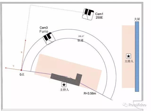 在设备安装和使用过程中也面临一些挑战,机器人也不例外。机器人提供的是沿圆弧轨道的位移,而图形设备需要的是直角坐标系中的位移。另外,机器人沿轨道运动时,与虚拟物体之间除了相对距离的变化还有拍摄角度的变化,这就需要定制相应的算法来解决以上问题。白主任说,在项目实施过程中,Ross Video的工程师和台里的技术人员通力合作,经过多次的现场测量和反复的计算调试,最终成功解决了这个难题,实现的弯轨运动的正确跟踪。