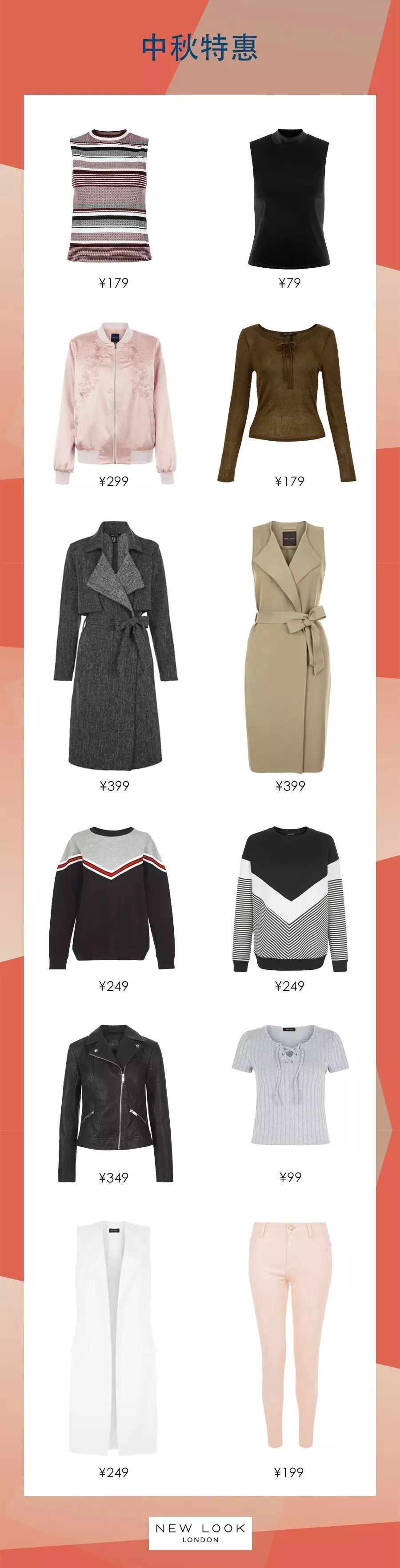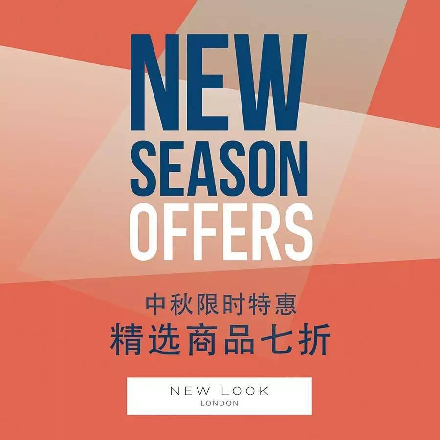 NEW LOOK中秋特惠,9月9日起,全国线下门店精选商品7折,折后两件更有9折。