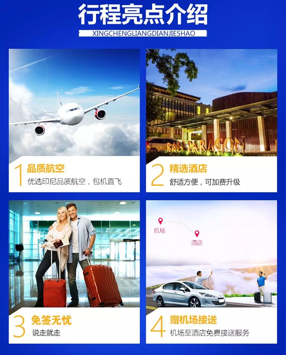 ·代订行程所列之经济舱机票、机票税及交通,印尼华语导游,印尼段机场接送,4/5晚酒店住宿,空调旅游车(不含自由活动当日用车),景点门票,行程所列正餐(4/5早2正,早餐为酒店赠送餐,正餐餐标¥50/人,不含酒水)
