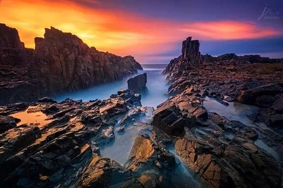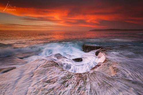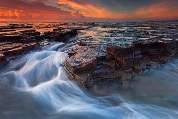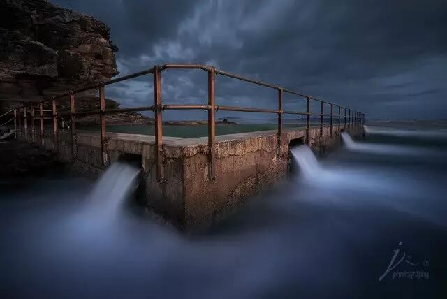 Maroubra 东部的Mahon岩石泳池,无论雾化还是拉丝都可拍出优美的线条感,海岬上大块平坦的岩石床轮廓分明,是本地摄影师青睐的拍摄点。