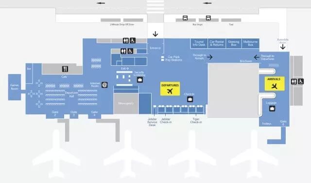 墨尔本图拉曼里机场(Tullamarine Airport),是墨尔本的主要机场,也是唯一一个国际机场,位于墨尔本西北方向25公里,大约30分钟车程。机场共分为4个航站楼,所有国际航班都由第二航站楼T2出发或到达。