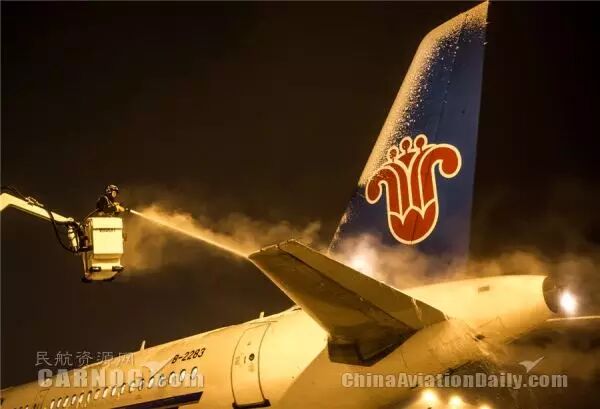 图:很多旅客不知道飞机起飞前为什么要除冰雪,其实冰雪会降低飞机的升力,造成飞机系统、发动机和部件工作不正常,对飞行安全有很大危害,所以每次下雪,飞机起飞前一定要对飞机机身和机翼进行彻底除冰雪作业。(文:沈卓/图:陈松)