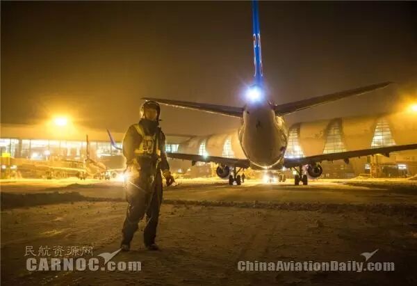 图:2016年12月8日,沈阳迎来入冬以来最强降雪,机场降雪量达到暴雪级别,王翀到单位后就接到除冰通知。(文:沈卓/图:陈松)