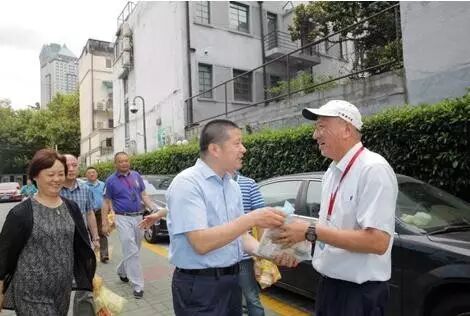 8月2日下午,集团副社长王伟等到新民晚报老大楼广场上,每到一处,都看往汗水湿透衣服的在高温下坚守岗位的安保和车管一线职工,与他们一一握手,感谢他们为方便职工群众正常出行所作出的贡献,并为他们送上了问候和防暑降温物品,并嘱咐他们要劳逸结合和保重身体。