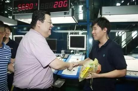 图为集团领导陈剑峰慰问印务中心灵石路印刷厂职工
