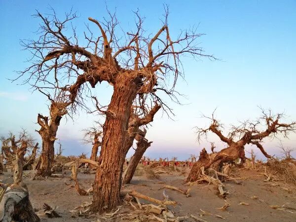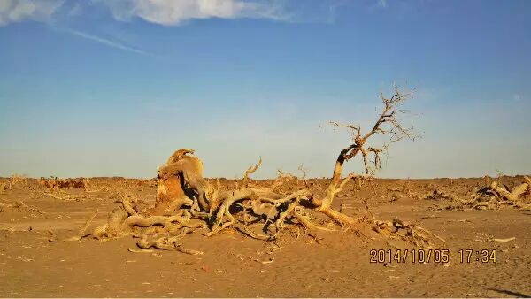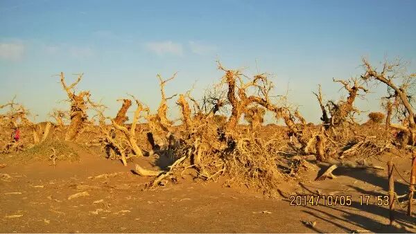 2、神秘怪树林:枯死的胡杨奇形怪状,或仰天长啸,或俯身颔首,或直立向天,或东倒西歪,或如动物的遗骨令人触目惊心,残枝断臂的胡杨,像是对生命无情摧残后留下的战场,让世人见证着倒而千年不朽的胡杨传奇。