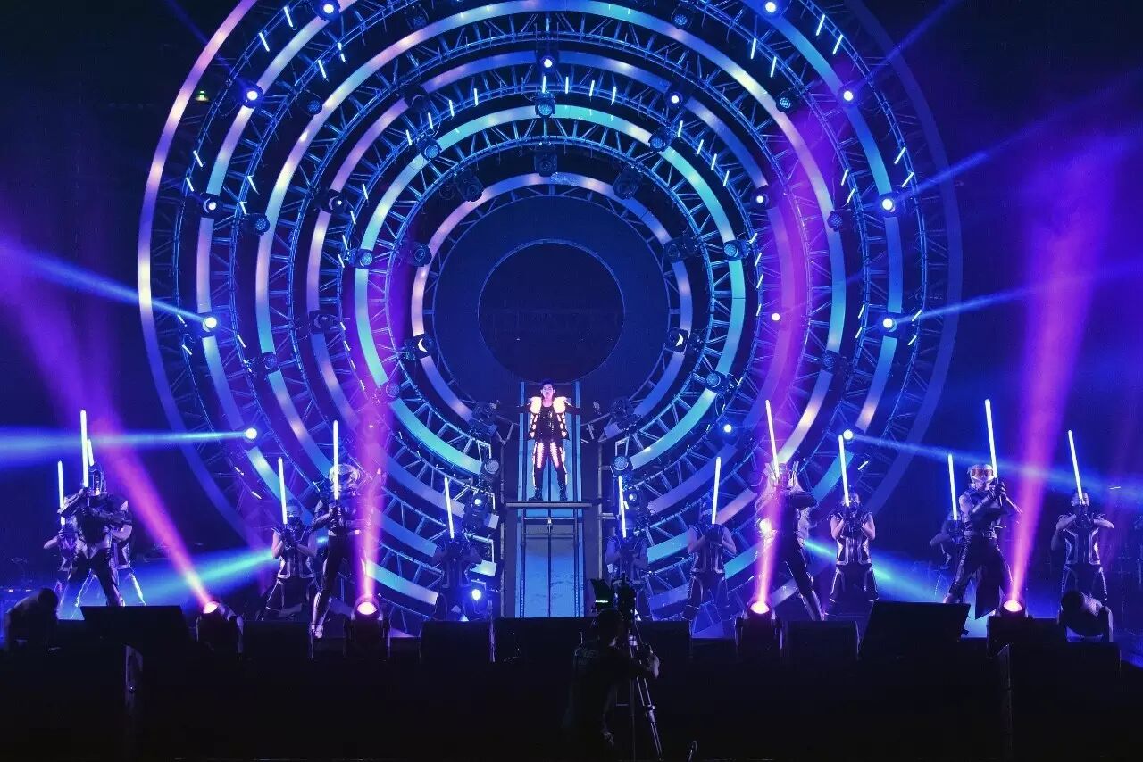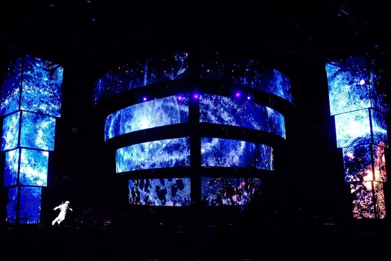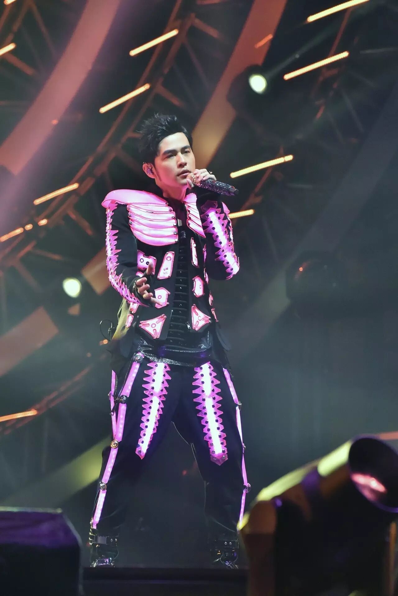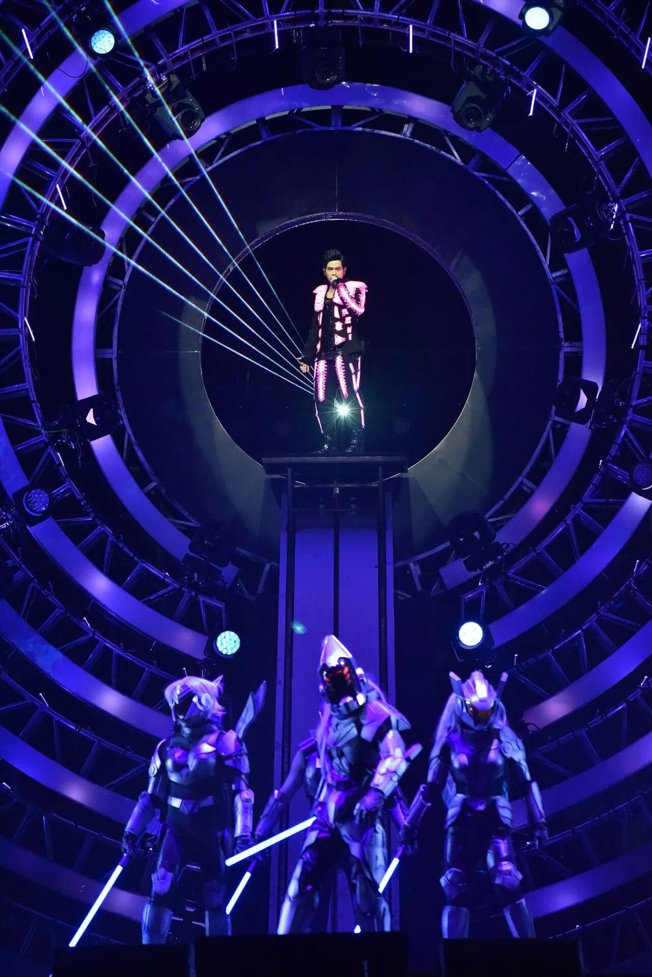 乐坛天王周杰伦果然是Invincible!今天在上海梅赛德斯奔驰文化中心登场的周杰伦「地表最强」(The Invincible)世界巡回演唱会,一开场就直接把歌迷拉到外层空间,舞台上巨型盔甲LED多层次浮空矗立,航天员漫步于宇宙之间,周杰伦搭乘太空舱穿越时空之门而来,按开舱门按钮来到了演唱会现场,穿着「电幻战士装」的他一现身就让歌迷尖叫声不绝于耳!透过LED视频设计精准切换到现场表演,让歌迷不用借助任何VR(Virtual Reality)装备,就宛如和周杰伦做了一场太空遨游!
