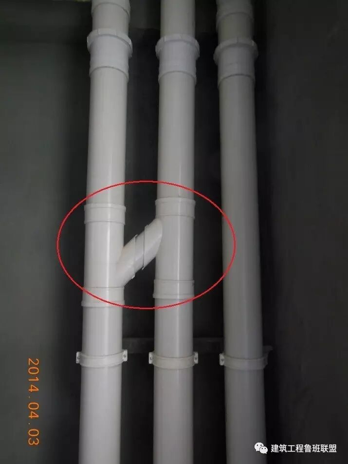 存在问题:污水与废水立管位置颠倒,导致废水横支管绕弯,易堵塞。