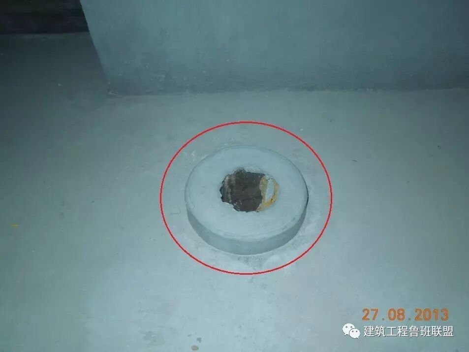 存在问题:卫生间排水支管使用刚性防水套管或钢套管预埋。(排水支管和地面装饰层完成后,套管顶部全部在装饰完成面以下,失去防水意义;且有偏差的孔洞修凿移位操作难度大;成本增加较多。)