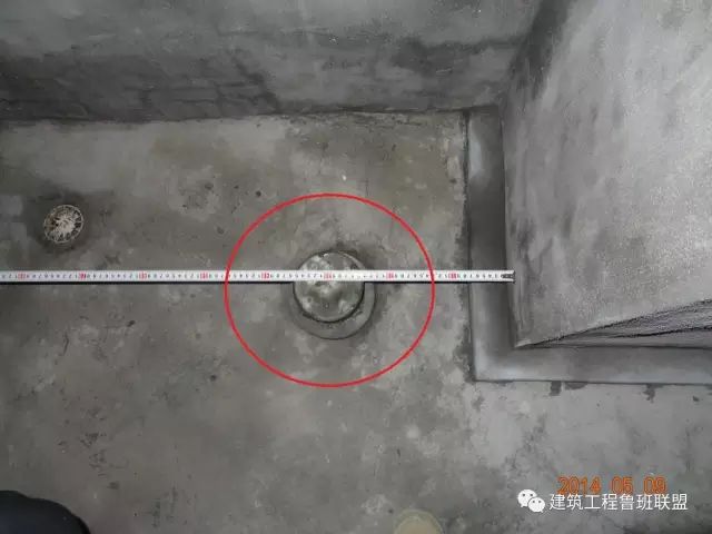改进措施:施工图评审阶段应按“地漏的设置位置应与地面材料排版相结合,并保证排水顺畅。”要求评审。地漏应设置在马桶附近墙体阴角处。