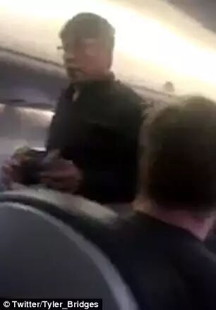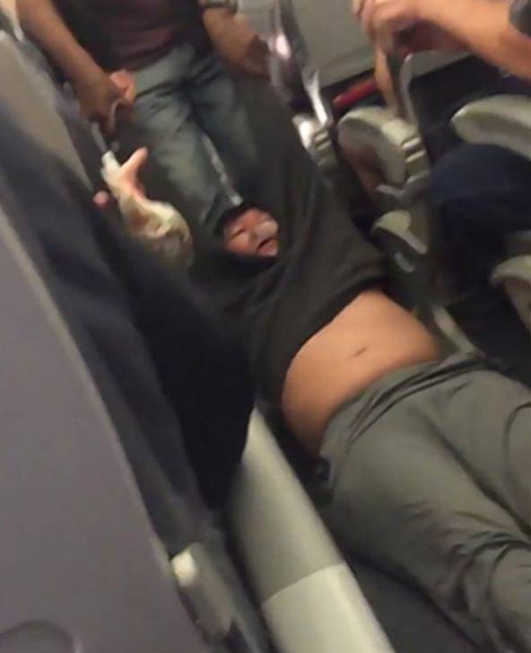 另外两名被选中的乘客和平离开后,这位男乘客说自己是个医生,明天有病人的预约要赶去医院,所以必须乘坐这一班飞机,他拒绝放弃自己的座位,并表示要找律师。交涉未果后,空乘人员叫来了O'Hare机场保安,于是就发生了上面拖拽的一幕。