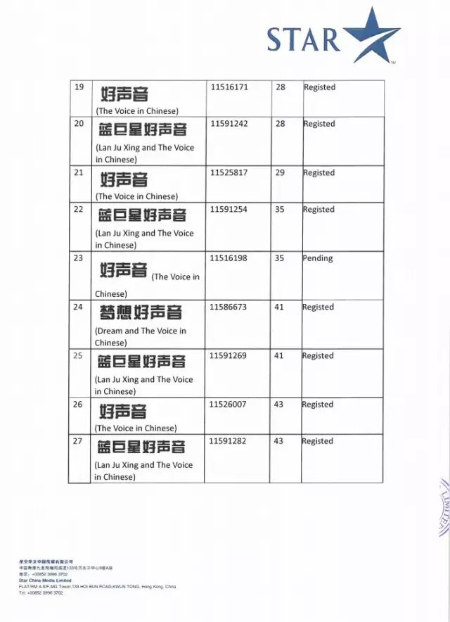 而在近日,,蓝巨星公司注册26个跟“好声音”有关的商标无效;蓝巨星公司随即也针对这一判定,委托北京市集佳律师事务所发表郑重声明:,“好声音”等26件注册商标仍合法有效。