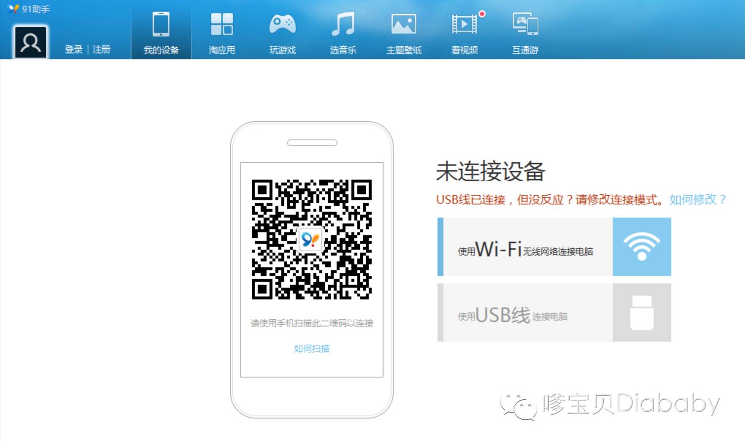 2、然后你需要在电脑上下载一款助手类的应用,这类软件起到的作用就是帮你把应用安装到手机上,如:91手机助手、pp助手,itools、苹果助手等起到的作用是一样的。下面以91手机助手为例,安装好程序打开: