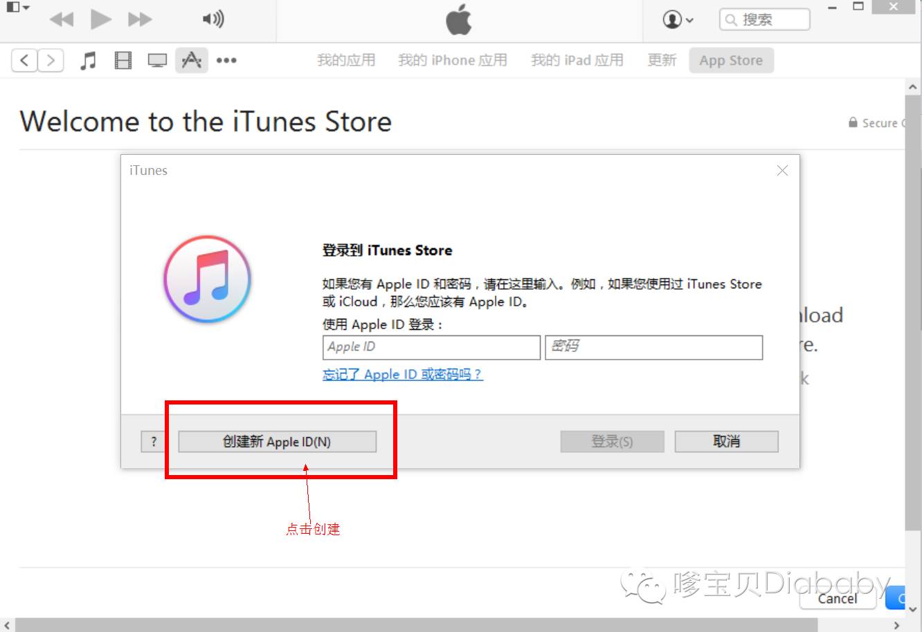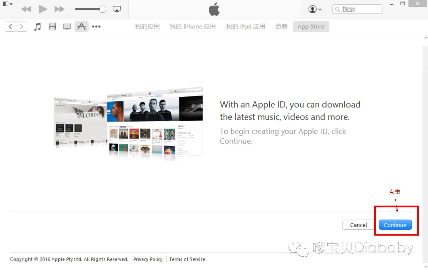 第六步:按照下图提示点击创建apple Id
