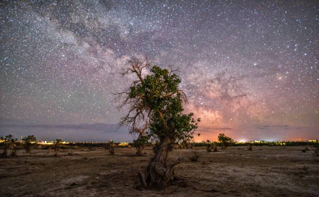之后我们在附近的胡杨林里拍摄银河,胡杨作为前景,是个很不错的想法。