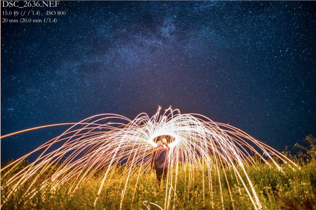 嗯,你没有看错,我是用了ISO64进行拍摄(D810的最低非扩展感光度),拍这张片子之前我就在想,都说拍银河要高ISO,那我能不能用低ISO拍出来呢?事实证明这是毫无压力的,放大看,画质很不错。