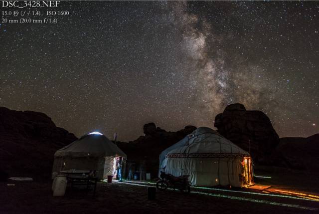 这个地方光污染挺严重的,我接了一张银河全景的片子,不过不是很好看。光污染很严重,银河不清楚,总之是废片,大家随意看看就好。