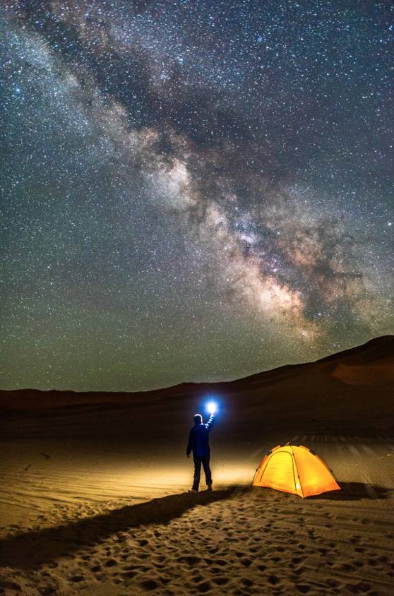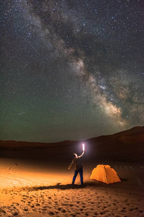 之后前往吐鲁番库木塔格沙漠拍摄银河。因为远离城市没有光无人,天气良好,所以拍到的银河就显得非常清楚。