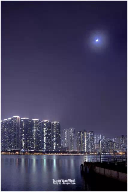 决定地点,到达现场,先寻找一下灯光,看看有否特别的光源,或特别的反光效果。对着高矮平均的大厦,尽量选择其中一幢来当主体,例如特别高的、颜色特别的、特别光亮的等等。